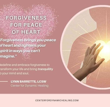 In this three-part series, Lynn Barrette, LCSW, helps you redefine forgiveness by looking at what forgiveness is NOT, exploring what it IS, and sharing tools for HOW to approach your forgiveness "project".